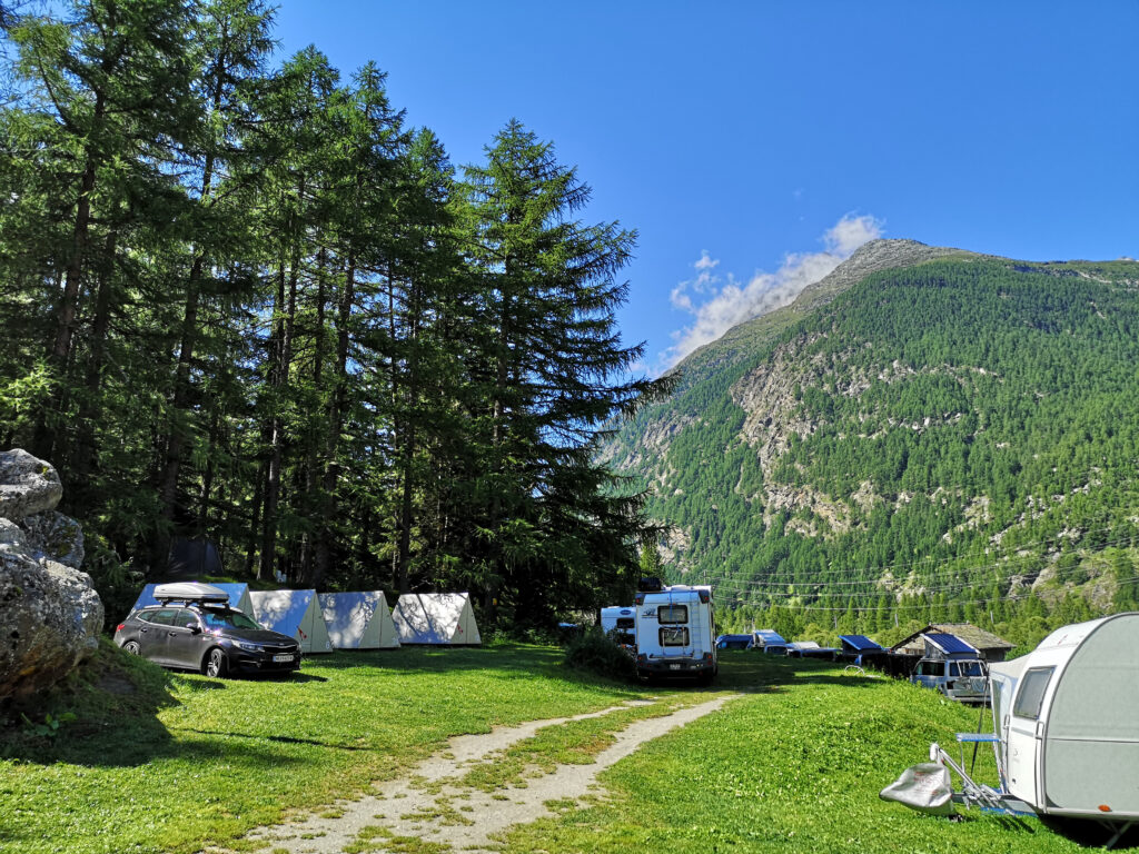 Schon bei der Ankunft auf diesem naturnahen Bergcamping spürt man die entspannte und herzliche Atmosphäre. Hier gibt es keinen Parzellen-Zwang, sondern das pure Gefühl von Freiheit. Du hast die Wahl: Suchst du dir dein eigenes, lauschiges Plätzchen auf der weitläufigen, unparzellierten Wiese, umgeben von Wald und Natur? Oder bevorzugst du mit deinem grossen Wohnmobil einen der neuen, grosszügig angelegten und nivellierten Stellplätze auf festem Untergrund? Egal, wofür du dich entscheidest, die traumhafte Aussicht auf die Walliser Alpen ist immer inklusive und macht diesen Ort zu einem der schönsten für Camping am Matterhorn.
